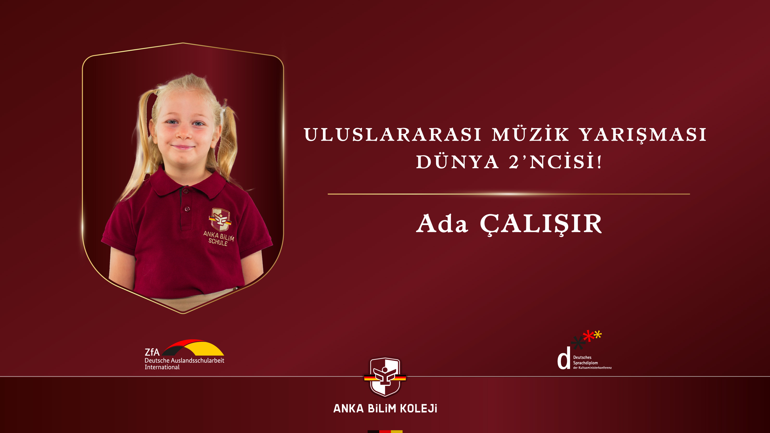 Öğrencimiz Ada ÇALIŞIR, Uluslararası Müzik Yarışması’nda Dünya 2’ncisi oldu!Bu büyük başarıyla hepimize gurur yaşatan Ada’yı tebrik ediyor, sanat yolculuğunda başarılarının devamını diliyoruz.